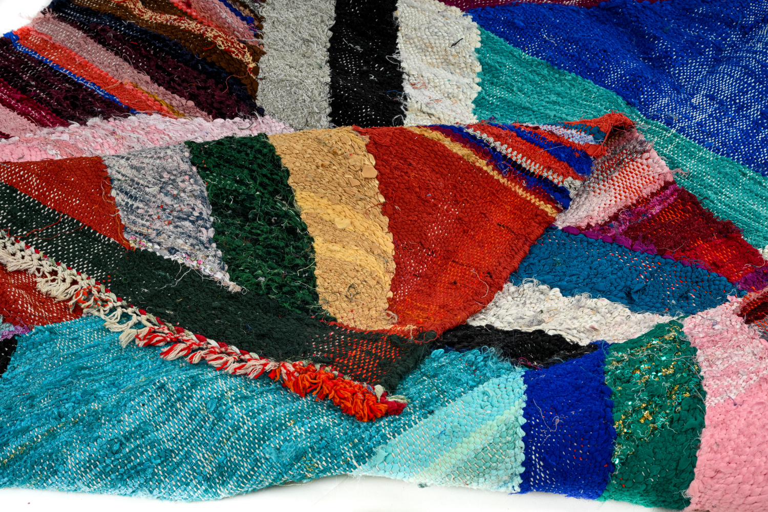 Boucehrouite-tæppet er endnu et tæppe i rækken af fantastiske tæppekreationer fra Marokko. Boucherouite tæppet er et genbrugstæppe der laves af tidligere anvendte tekstiler, som uld, bomuld, garn, syntetiske fibre og andre tekstiler der kan genanvendes. Disse vidunderlige marokkanske genbrugstæpper er en konsekvens af forandringen der er sket i de seneste årtier i de marokkanske landsbyer, hvor gamle nomadekulturer er erstattet af fast landbrug og andre moderne beskæftigelser i landsbyen. Det har ført til, at ulden fra fårene, der er materialet i Beni Ourain- og Azilal-tæpperne, er blevet endnu mere sjældne. Det er derfor blevet endnu vigtigere at benytte tidligere anvendte tekstiler og det gør kvinderne i de marokkanske landsbyer på en fremragende måde. Farverne og mønstrene i Boucherouite tæppet kender vi fra Azilal tæppet og præcis som dette hænger Boucherouite tæppet også på mange kunstudstilllinger rundt omkring i verden.