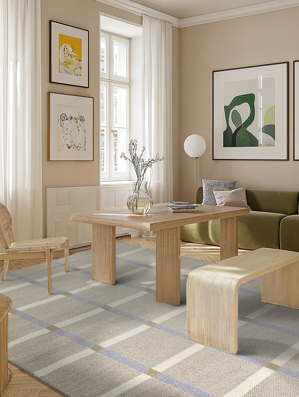 Et uldtæppe inspireret af nutidens designere og moderne mønstre. Vores uldtæpper væves i hånden i de to traditionsrige tæppedistrikter Jaipur og Bhadohi i Indien. Tæpperne er tæt vævet med høj trådtæthed, ligger stabilt og fladt på gulvet og er nemme at flytte – det perfekte tæppe til alle hjemmets rum.