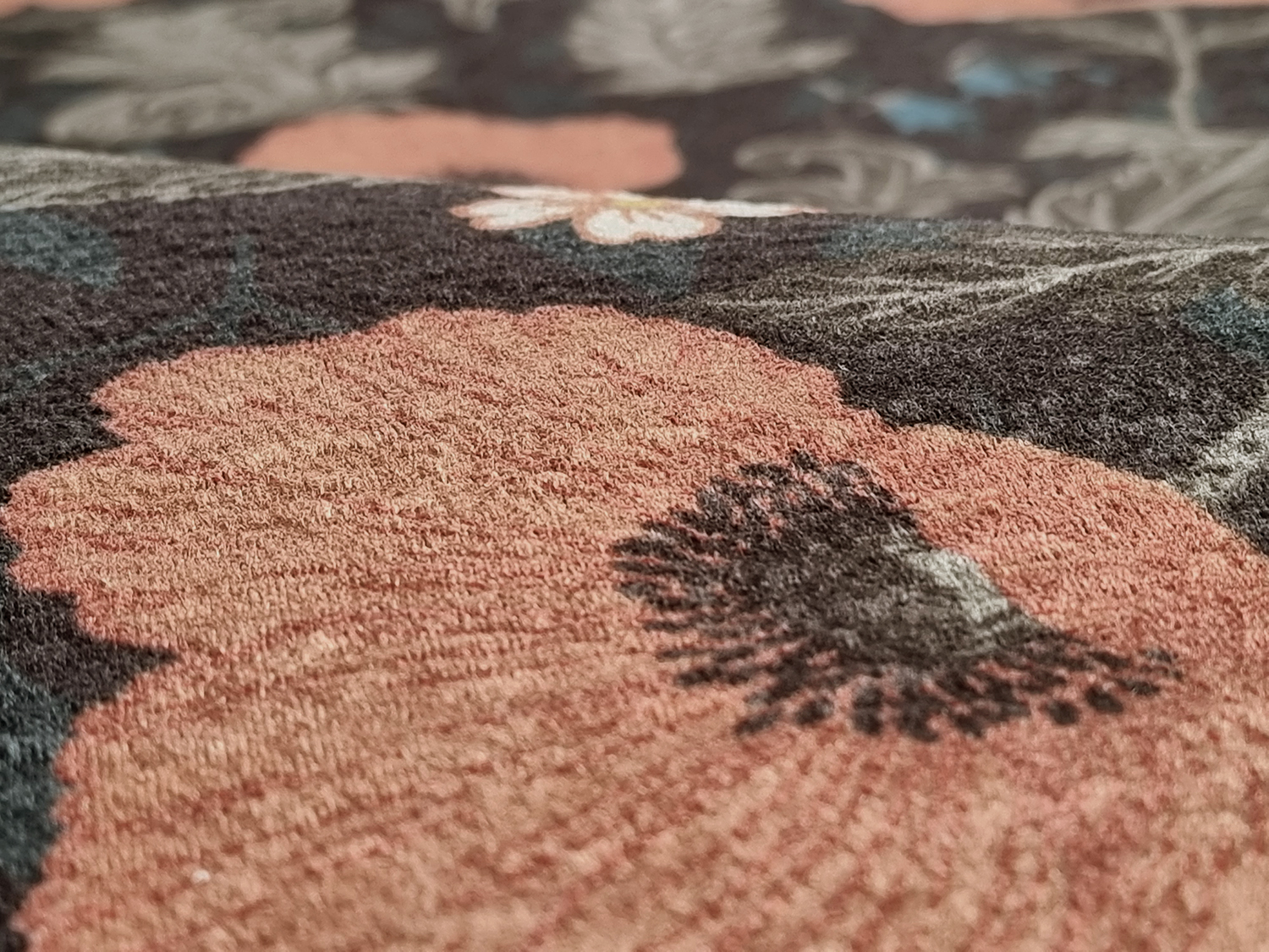 Gulvtæppe fra kollektionen "Poppy", skabt i samarbejde med den talentfulde designer Hanna Wendelbo. I skabelsen af kollektionen har Hanna fundet inspiration i naturens vidunderlige mangfoldighed og præsenterer i Poppy-kollektionen et dejligt blomstermønster, der gennemsyrer hver detalje.