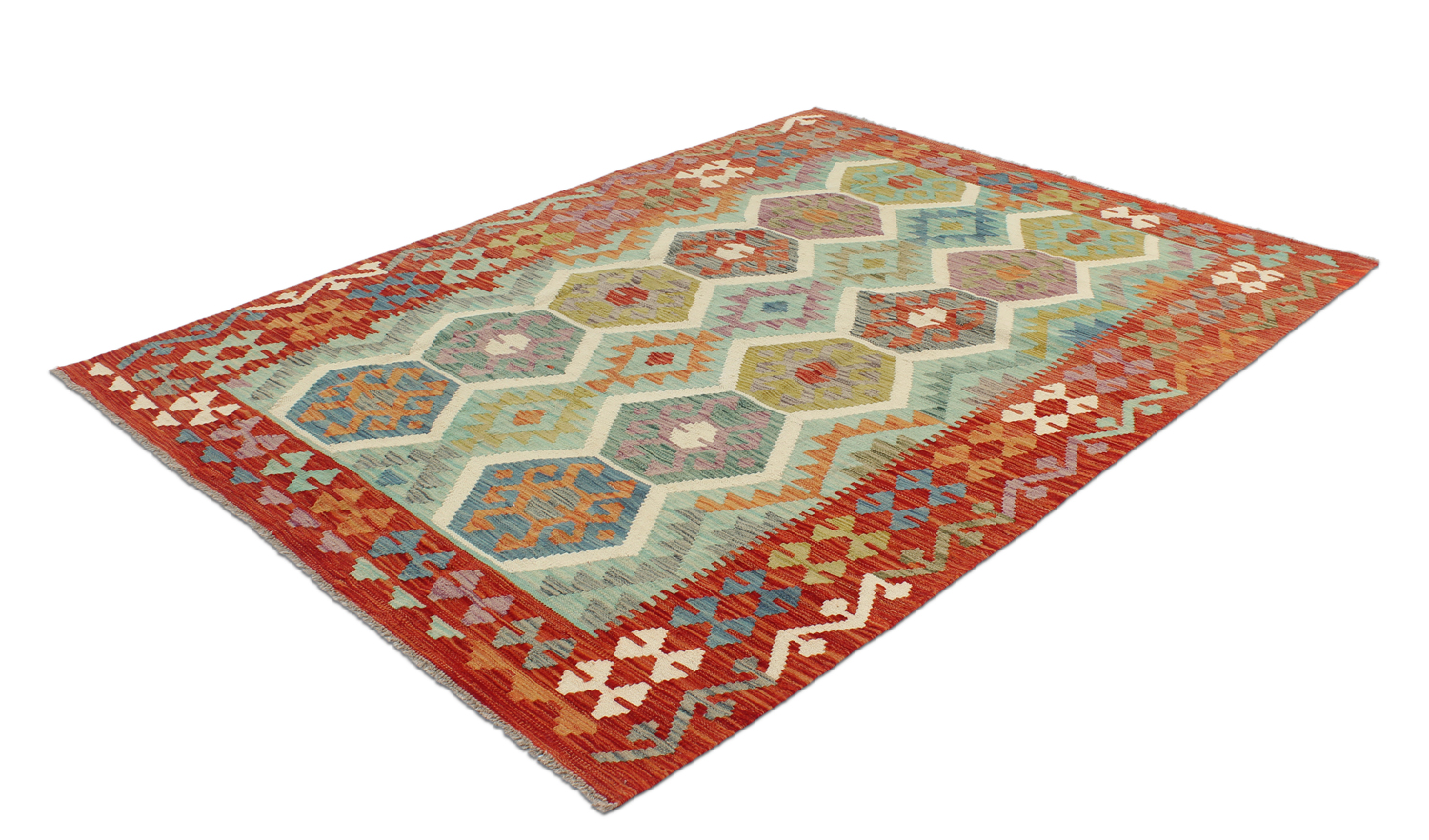 Orientalsk kelimtæppe forener en fladvævet struktur med naturlig uld – let og fleksibelt, nemt at placere i entré, stue eller under spisebordet. Den slanke profil gør det også oplagt til layering oven på større tæpper.