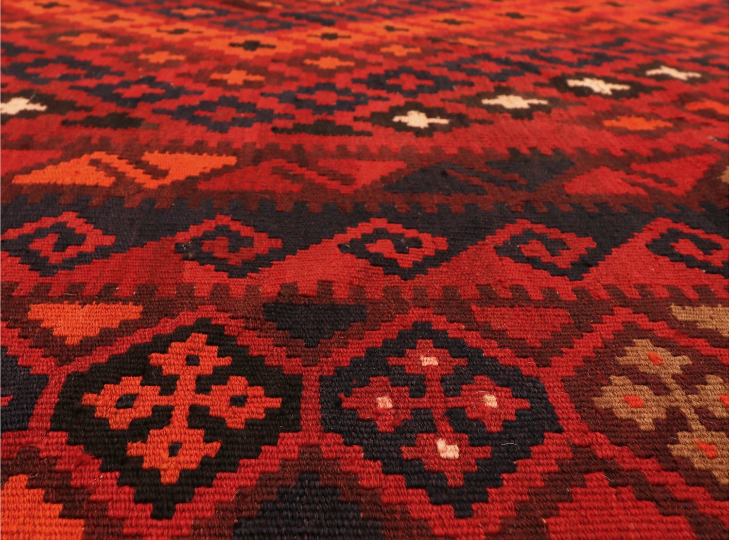 Orientalsk kelimtæppe forener en fladvævet struktur med naturlig uld – let og fleksibelt, nemt at placere i entré, stue eller under spisebordet. Den slanke profil gør det også oplagt til layering oven på større tæpper.