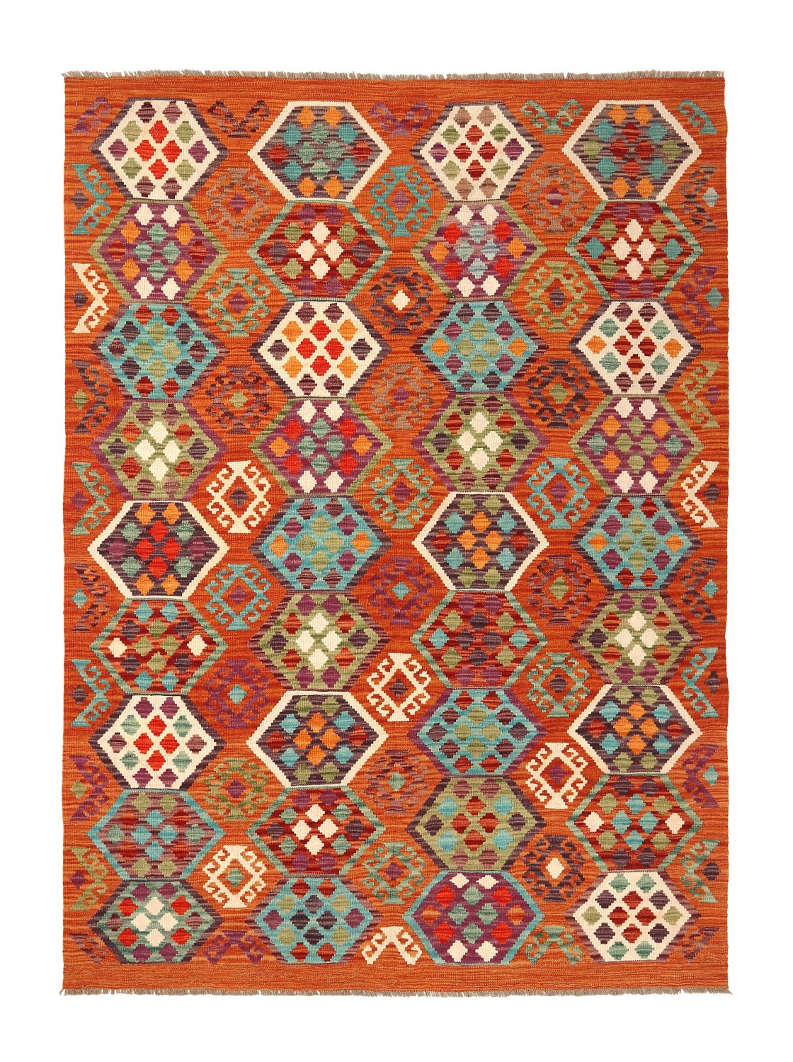 Orientalsk kelimtæppe forener en fladvævet struktur med naturlig uld – let og fleksibelt, nemt at placere i entré, stue eller under spisebordet. Den slanke profil gør det også oplagt til layering oven på større tæpper.