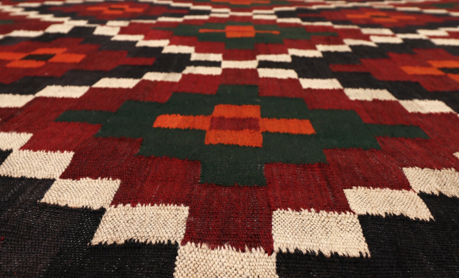 Orientalsk kelimtæppe forener en fladvævet struktur med naturlig uld – let og fleksibelt, nemt at placere i entré, stue eller under spisebordet. Den slanke profil gør det også oplagt til layering oven på større tæpper.