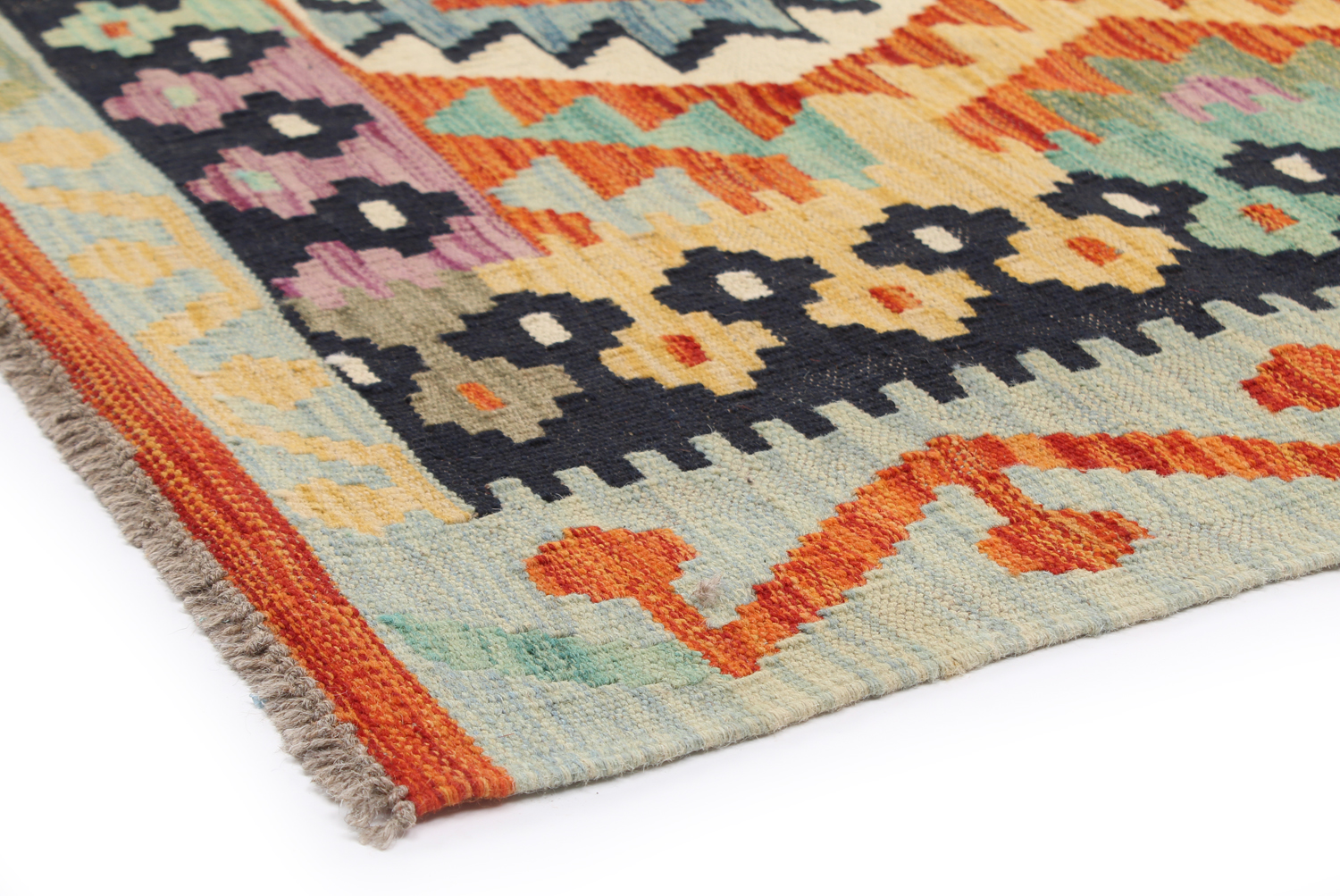 Orientalsk kelimtæppe forener en fladvævet struktur med naturlig uld – let og fleksibelt, nemt at placere i entré, stue eller under spisebordet. Den slanke profil gør det også oplagt til layering oven på større tæpper.